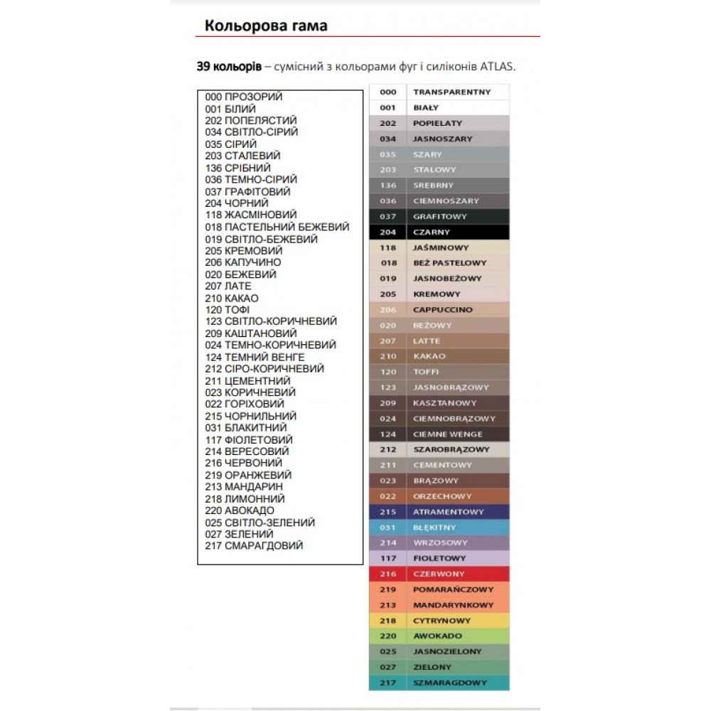 - 39 цветов, в том числе бесцветный